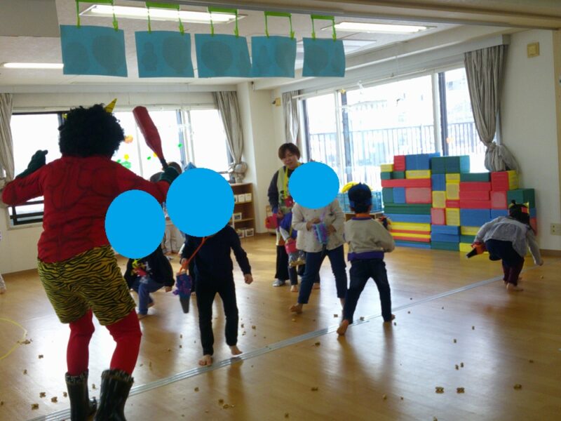 みんなの「おには~そと ふくは~うち」の掛け声でいつもの先生に戻ることが出来ましたよ✨
