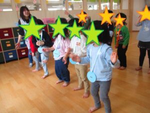 英語の音楽に合わせて体を動かして楽しんでいます♪